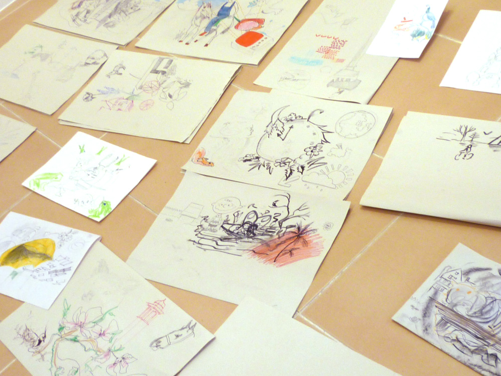 In the meantime, here are photos from our last session in July at Philadelphia Street...Some especially awesome drawings were produced that day, inspired by our fabulous postcard collection. We wanted to keep them all!!!